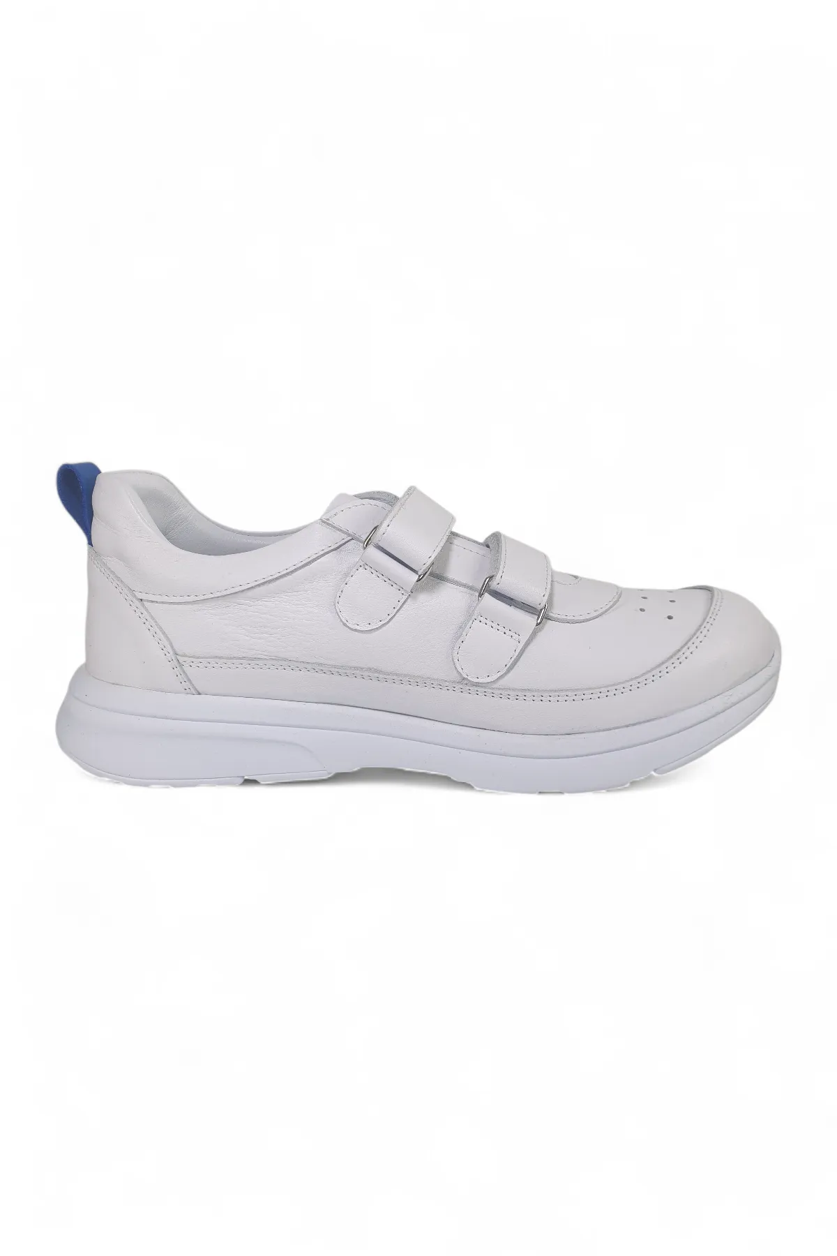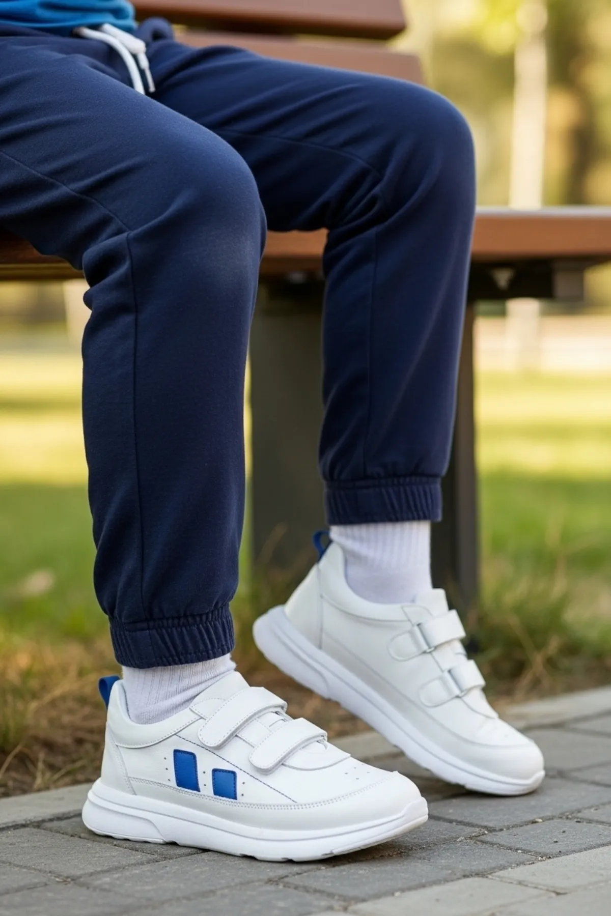 Beyaz Kot Mavi Hakiki Deri Tam Ortopedik Çocuk Ayakkabı