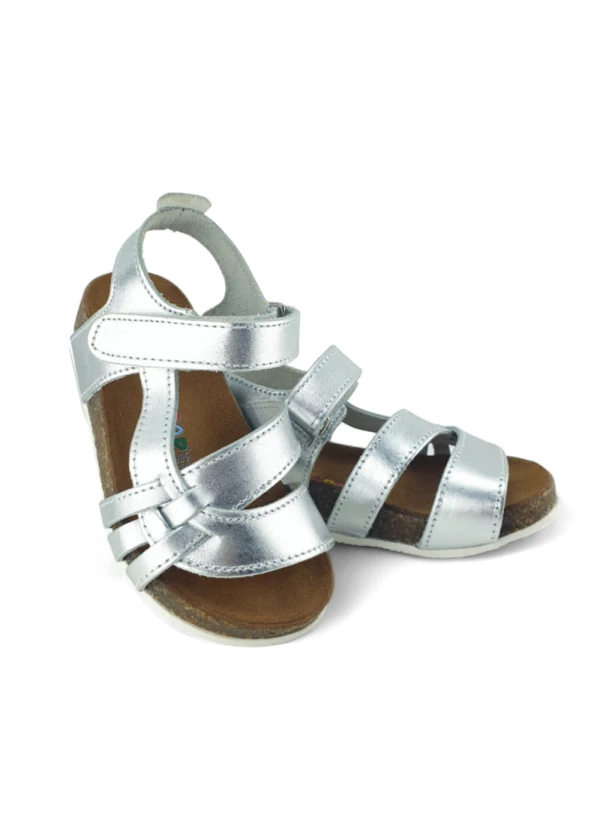 Gümüş Deri ve Ortopedik Bebek Sandalet - Gorsel 1