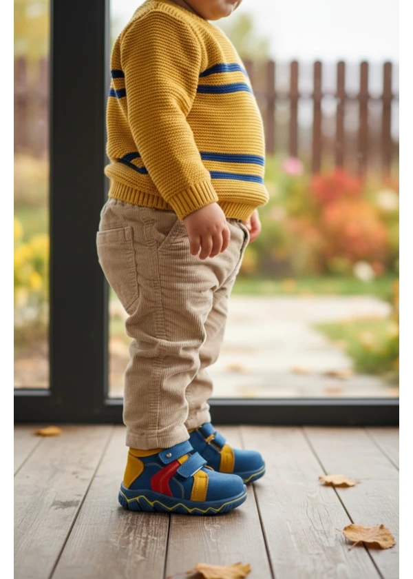 Kış ayları için tasarlanan hakiki deri ortopedik erkek bebek botu.