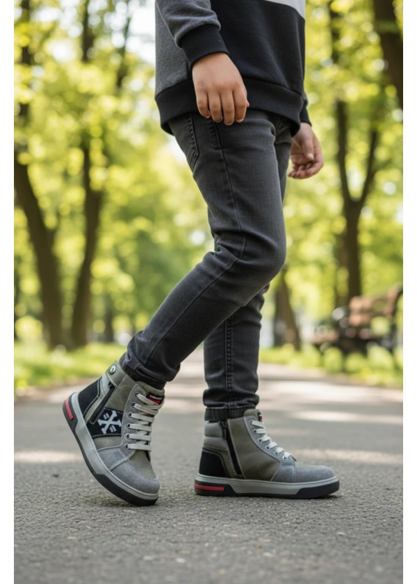 Ceyo yeşil hakiki deri tam ortopedik fermuar detaylı çocuk botu.