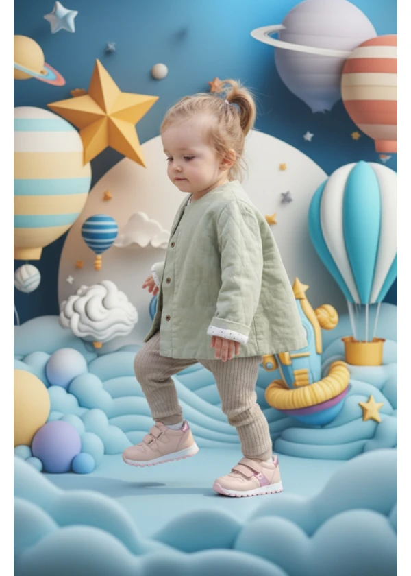 Günlük kullanım için tasarlanan pembe hakiki deri ortopedik kız bebek spor ayakkabısı.