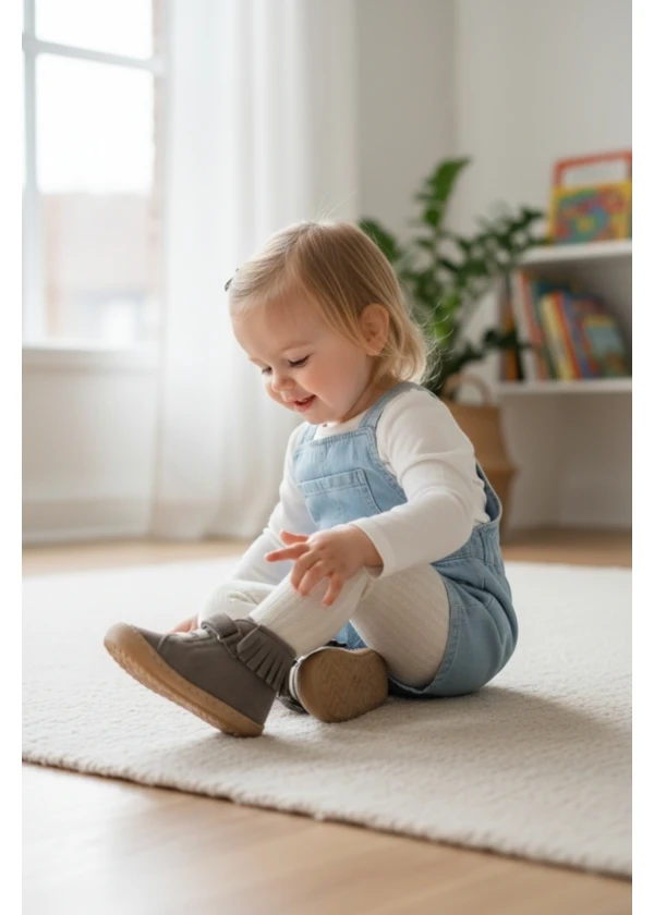 Perlina'nın hakiki deri tam ortopedik püsküllü ilk adım ayakkabısı, minik adımların sağlıklı ve konforlu atılması için özel olarak tasarlandı. Vizon rengi ile şıklığı ve zarafeti bir araya getiren bu ayakkabı, ilk adımlarını atan çocuklar için mükemmel bir seçim.