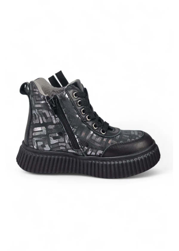 Ceyo siyah hakiki deri yazı baskılı tam ortopedik kız bot, trend tasarım.