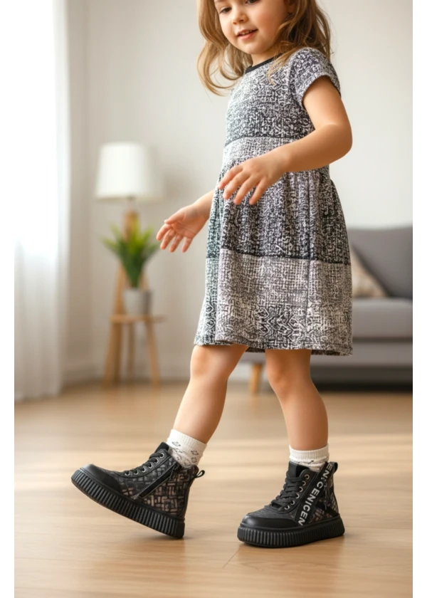 Şık yazı baskısı ve Ceyo kalitesiyle üretilen siyah ortopedik kız çocuk botu.