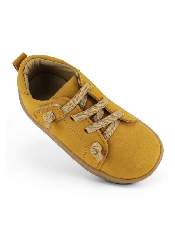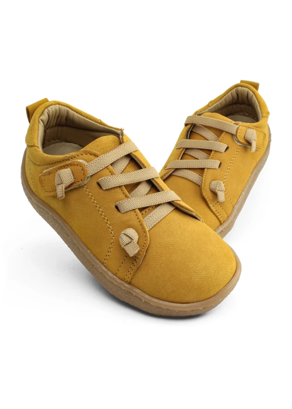 Hardal sarı deri ortopedik çocuk spor ayakkabısı, enerjik rengi ve konforlu yapısıyla öne çıkıyor.