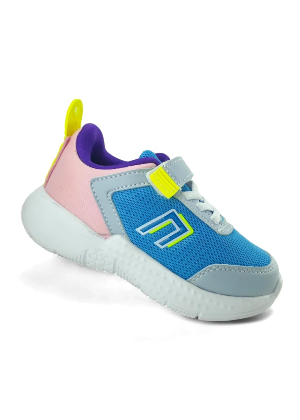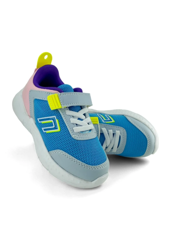 Canlı mavi rengiyle dikkat çeken anatomik çocuk spor ayakkabısı.