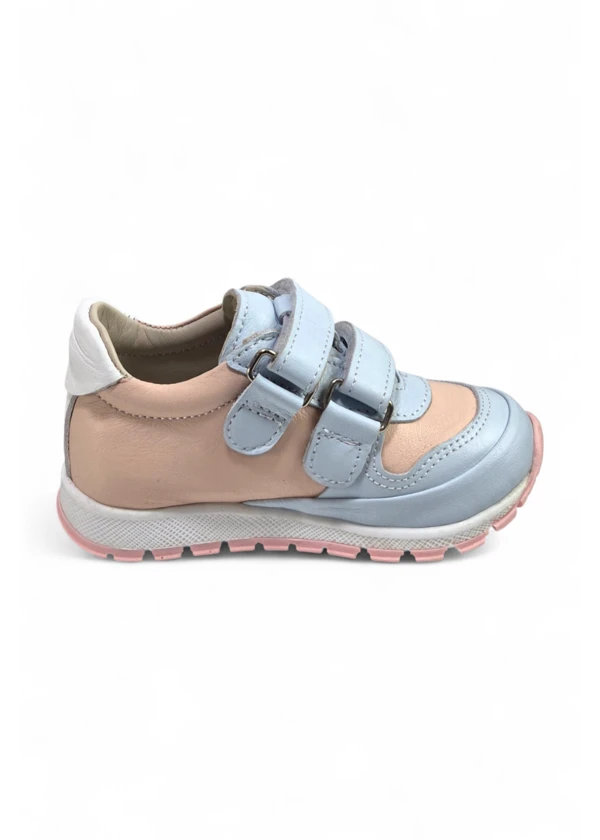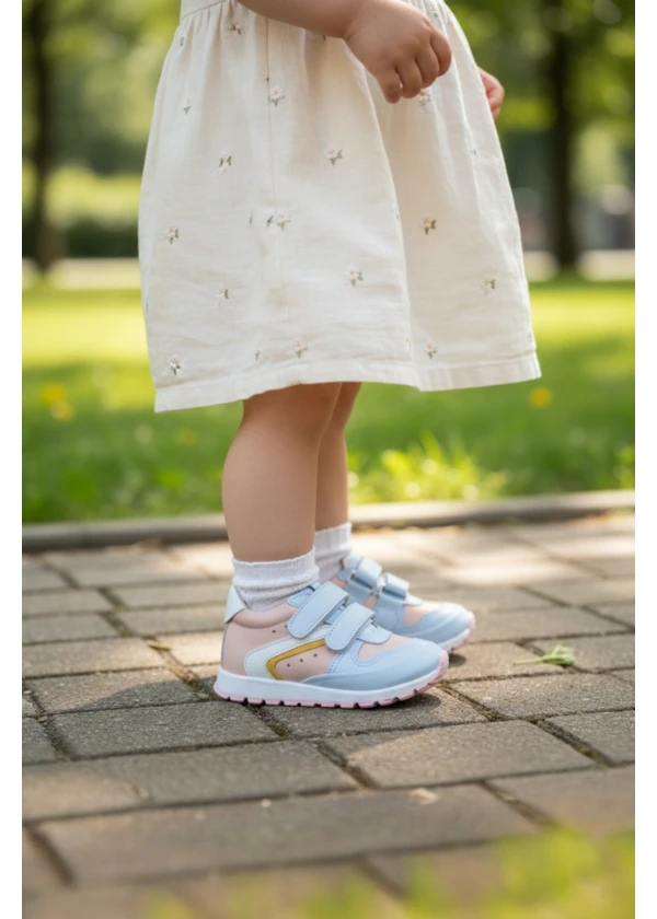 Perlina Mavi Hakiki Deri Tam Ortopedik Çift Cırtlı Bebek Spor Ayakkabı