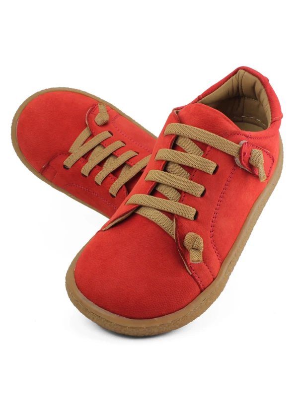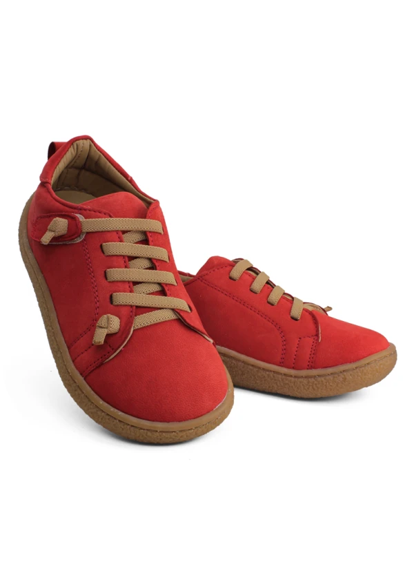 Mercan kırmızı deri ortopedik çocuk spor ayakkabısı, canlı rengi ile çocukların favorisi.