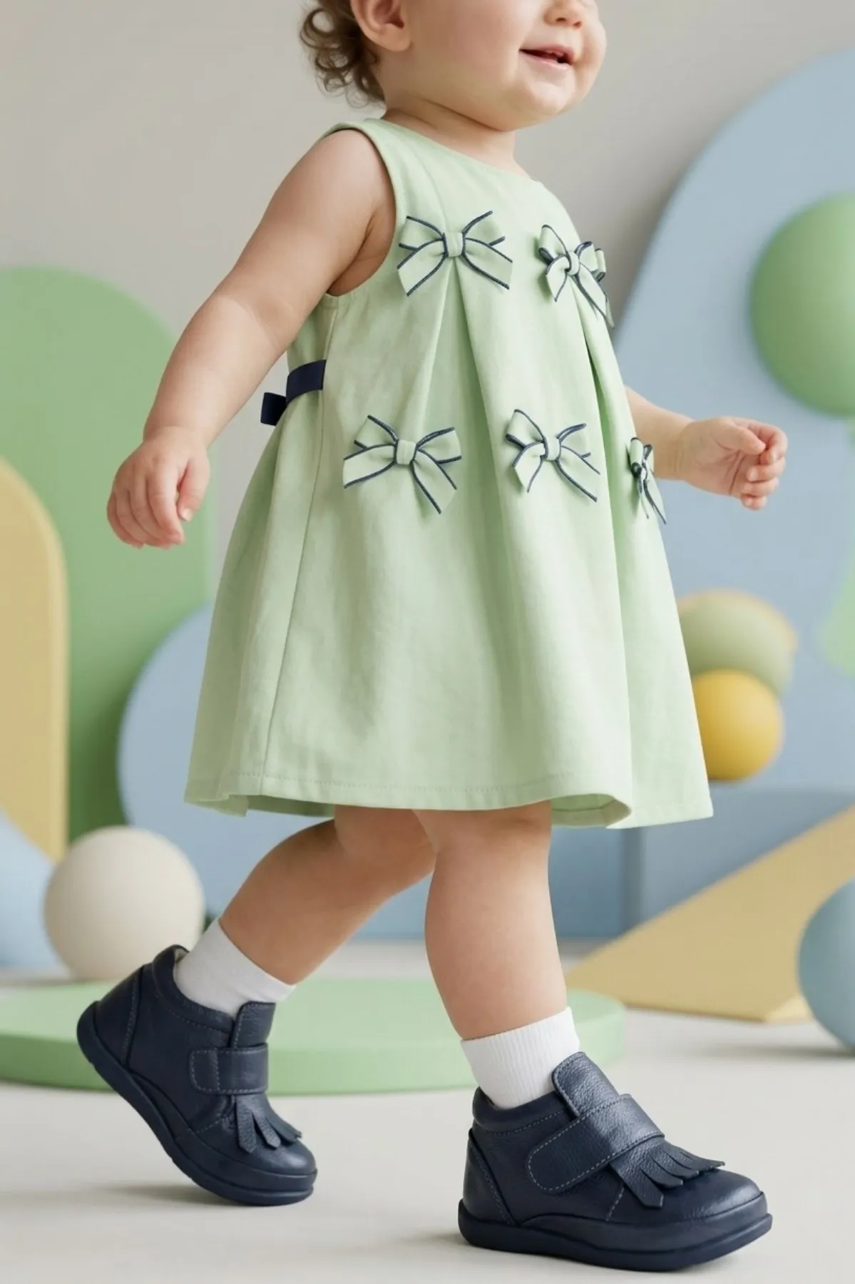 Bebeklerin ilk adımlarını desteklemek için tasarlanan bu püsküllü ayakkabı, hem şık görünümü hem de konforlu yapısıyla öne çıkar. Hakiki deri dış yüzeyi sayesinde ayağın nefes almasına yardımcı olur ve yumuşak dokusuyla hassas bebek ayaklarına uyum sağlar.