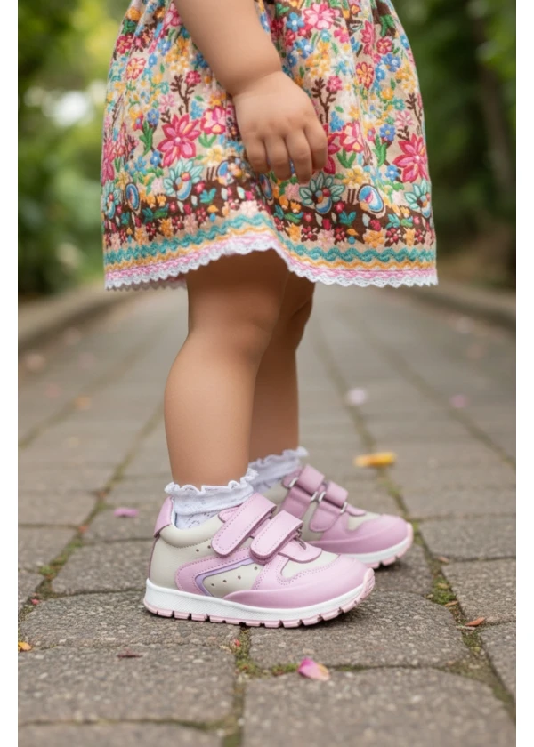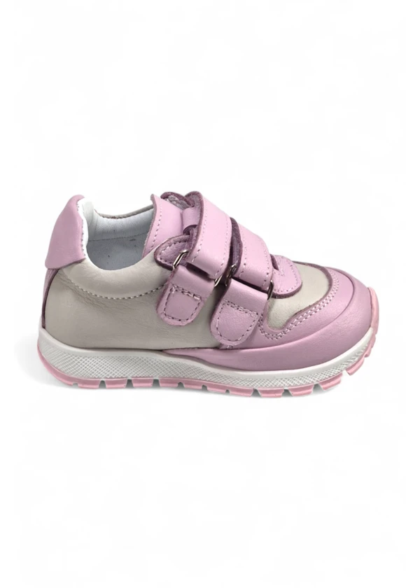 Perlina pembe hakiki deri çift cırtlı tam ortopedik bebek spor ayakkabısı.