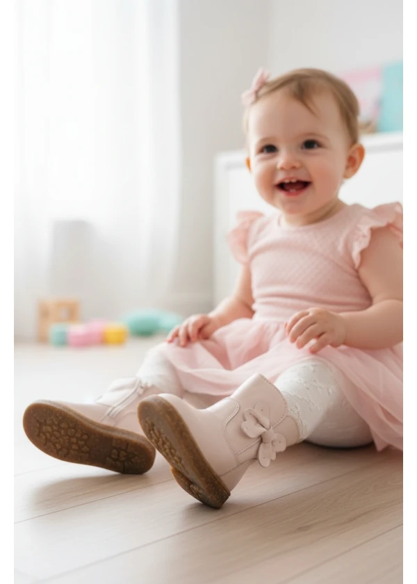 Perlina pembe iç dış hakiki deri tam ortopedik kız bebek botu, premium kalite.