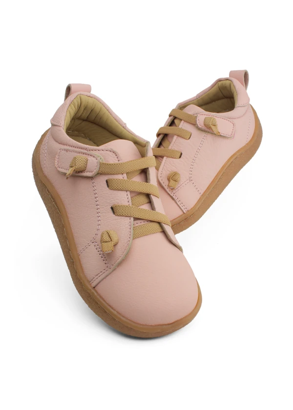 Pudra pembe deri ortopedik kız çocuk spor ayakkabısı, zarif ve konforlu tasarım.