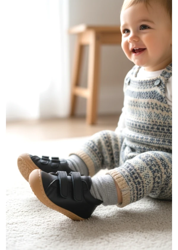 Siyah Hakiki Deri Tam Ortopedik Çift Cırtlı Ayakkabı